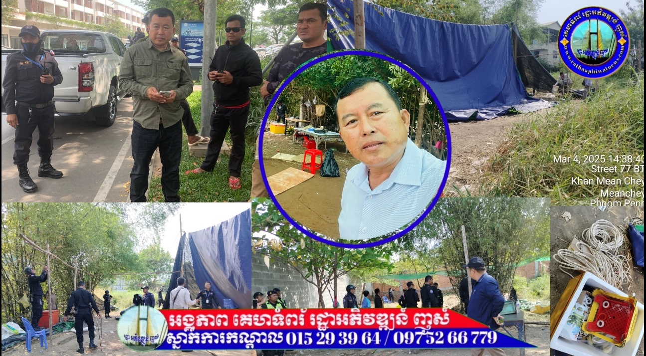 ថ្ងៃអង្គារទី០៤ ខែមីនា ឆ្នាំ២០២៥ ដោយមាន បទបញ្ជាផ្ទាល់របស់លោក សេង គន្ធ អភិបាលនៃគណៈអភិបាលខណ្ឌមានជ័យ លោកបានចាត់តាំង លោកអភិបាលរង ឌី សុខខែម ដឹកនាំកម្លាំងគណ:បញ្ជាការឯកភាពខណ្ឌមានជ័យ ចុះបង្ក្រាបទីតាំង សៃវៀន ជល់មាន់ និងអាប៉ោង ១កន្លែង ដែលមានទីតាំងស្ថិតនៅក្នុងភូមិឫស្សី៣ សង្កាត់ស្ទឹងមានជ័យ២ ខណ្ឌមានជ័យ។