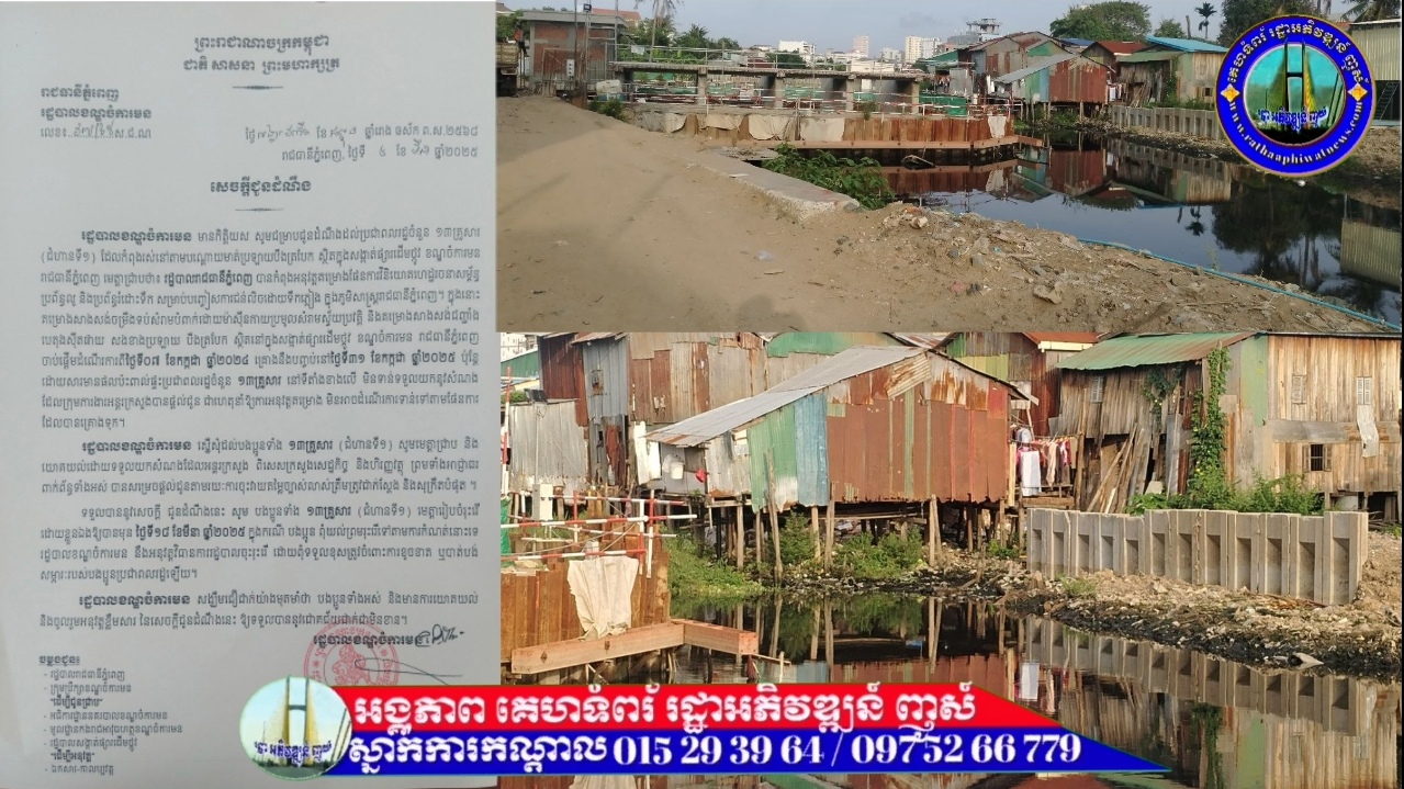 រដ្ឋបាលខណ្ឌចំការមន មានកិត្តិយស សូមជម្រាបជូនដំណឹងដល់ប្រជាពលរដ្ឋចំនួន ១៣គ្រួសារ (ជំហានទី១) ដែលកំពុងរស់នៅតាមបណ្តោយមាត់ប្រឡាយបឹងត្របែក ស្ថិតក្នុងសង្កាត់ផ្សារដើមថ្កូវ ខណ្ឌចំការមន រាជធានីភ្នំពេញ មេត្តាជ្រាបថា៖ រដ្ឋបាលរាជធានីភ្នំពេញ បានកំពុងអនុវត្តគម្រោងផែនការវិនិយោគហេដ្ឋរចនាសម្ព័ន្ធ ប្រព័ន្ធលូ និងប្រព័ន្ធរំដោះទឹក សម្រាប់បញ្ចៀសការជន់លិចដោយទឹកភ្លៀង ក្នុងភូមិសាស្ត្ររាជធានីភ្នំពេញ។ ក្នុងនោះ គម្រោងសាងសង់ចម្រឹងទប់សំរាមបំពាក់ដោយម៉ាស៊ីនកាយប្រមូលសំរាមស្វ័យប្រវត្តិ និងគម្រោងសាងសង់ជញ្ជាំង បេតុងស៊ុតផាយ សងខាងប្រឡាយ បឹងត្របែក ស្ថិតនៅក្នុងសង្កាត់ផ្សារដើមថ្កូវ ខណ្ឌចំការមន រាជធានីភ្នំពេញ ចាប់ផ្តើមដំណើរការពីថ្ងៃទី០៧ ខែកក្កដា ឆ្នាំ២០២៤ គ្រោងនឹងបញ្ចប់នៅថ្ងៃទី៣១ ខែកក្កដា ឆ្នាំ២០២៥ ប៉ុន្តែ ដោយសារមានផលប៉ះពាល់ផ្ទះប្រជាពលរដ្ឋចំនួន ១៣គ្រួសារ នៅទីតាំងខាងលើ មិនទាន់ទទួលយកនូវសំណង ដែលក្រុមការងារអន្តរក្រសួងបានផ្តល់ជូន ជាហេតុនាំឱ្យការអនុវត្តគម្រោង មិនអាចដំណើរការទាន់ទៅតាមផែនការ ដែលបានគ្រោងទុក។