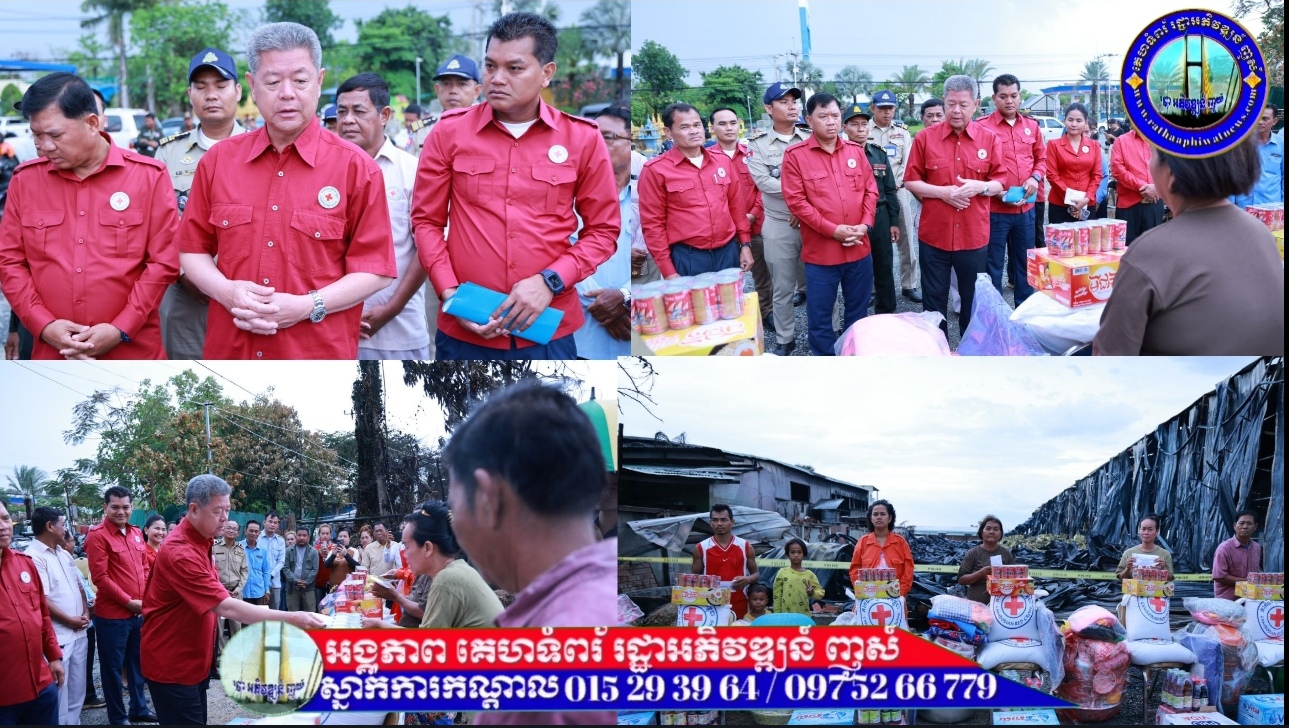 ខេត្តកណ្ដាល៖ សៀលថ្ងៃ០២ ខែមេសា ឆ្នាំ២០២៥ ឯកឧត្តម គួច ចំរើន អភិបាលខេត្ត នៃគណៈអភិបាលខេត្តកណ្តាល និងជាប្រធានគណៈកម្មាធិការសាខាកាកបាទក្រហមកម្ពុជាខេត្តកណ្តាល អញ្ជើញចុះសួរសុខទុក្ខ និងនាំយកអំណោយមនុស្សធម៌របស់កាកបាទក្រហមកម្ពុជា ដែលមានសម្តេចកិត្តិព្រឹទ្ធបណ្ឌិត ប៊ុន រ៉ានី ហ៊ុនសែន ជាប្រធាន ទៅចែកជូនដល់ប្រជាពលរដ្ឋរងគ្រោះដោយអគ្គិភ័យឆេះផ្ទះ ចំនួន ៥ នៅភូមិថ្លើក ឃុំពើក ស្រុកអង្គស្នួល ខេត្តកណ្ដាល។