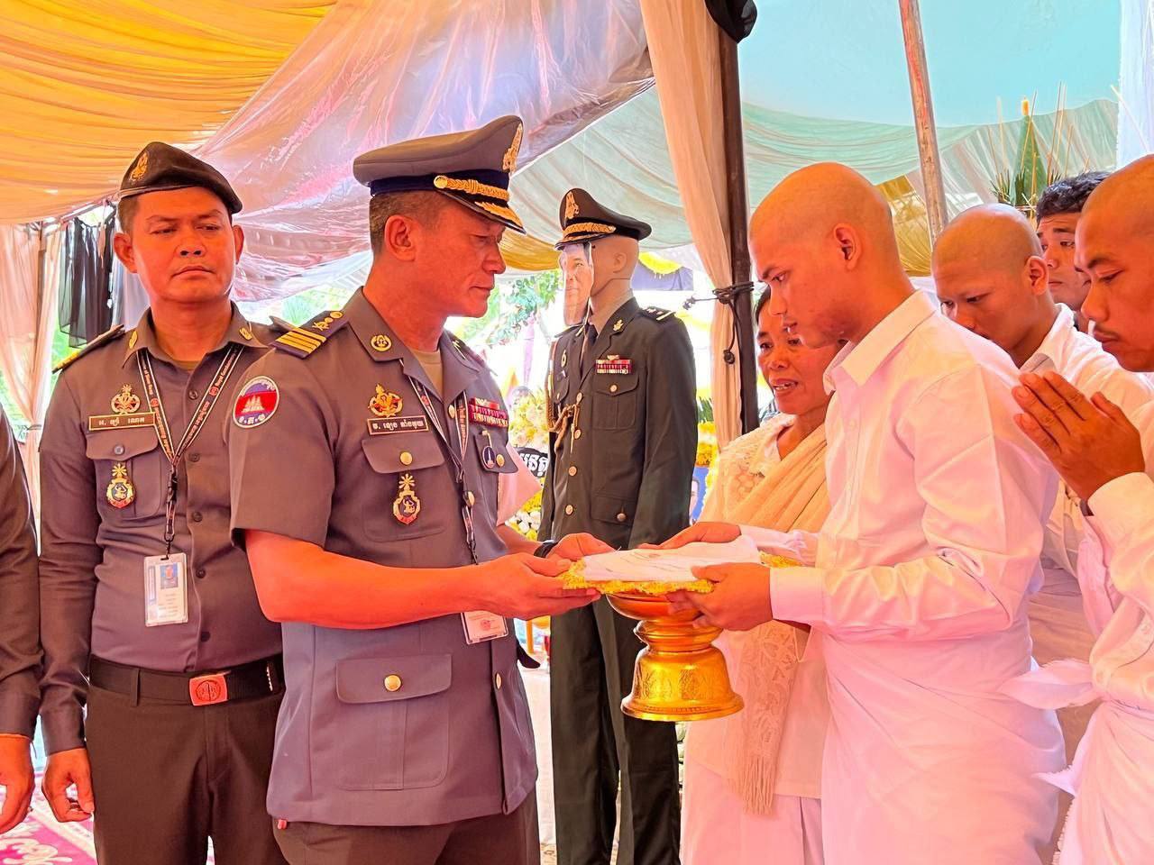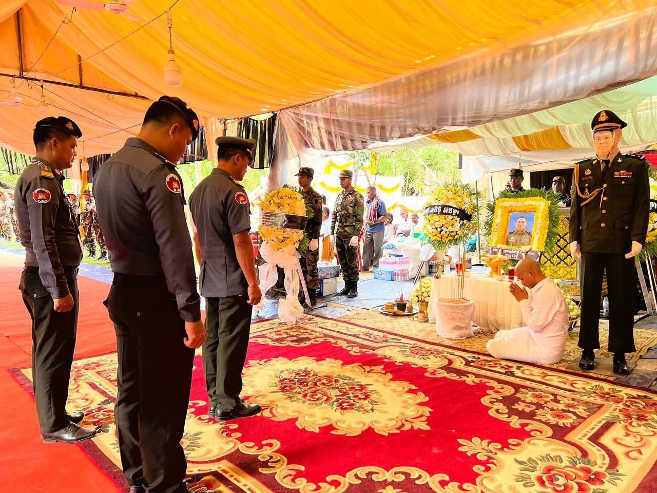 នាព្រឹកថ្ងៃអាទិត្យ ទី៣ ខែសីហា ឆ្នាំ២០២៥ ក្រុមកាងារដឹកនាំដោយ លោកវរសេនីយ៍ត្រី ឡេង តាំងគួយ មេបញ្ជាការមូលដ្ឋានកងរាជអាវុធហត្ថស្រុកបន្ទាយស្រី បានចូលរួមគោរពវិញ្ញាណក្ខន្ធសព លោកឧត្តមសេនីយ៍ត្រី ពៅ សំណាងជំនួយការសេនាធិការ វរ:សេនាតូចស៊ើបការណ៍កងពលធំអន្តរាគមន៍លេខ២ កងទ័ពជើងគោក ដែលបានពលីជីវិតនៅលើសមរភូមិប្រយុទ្ធព្រំដែនកម្ពុជា-ថៃ កាលពីថ្ងៃសុក្រ ទី១ ខែសីហា ឆ្នាំ២០២៥ ជន្មាយុ ៥៦ ឆ្នាំ ។