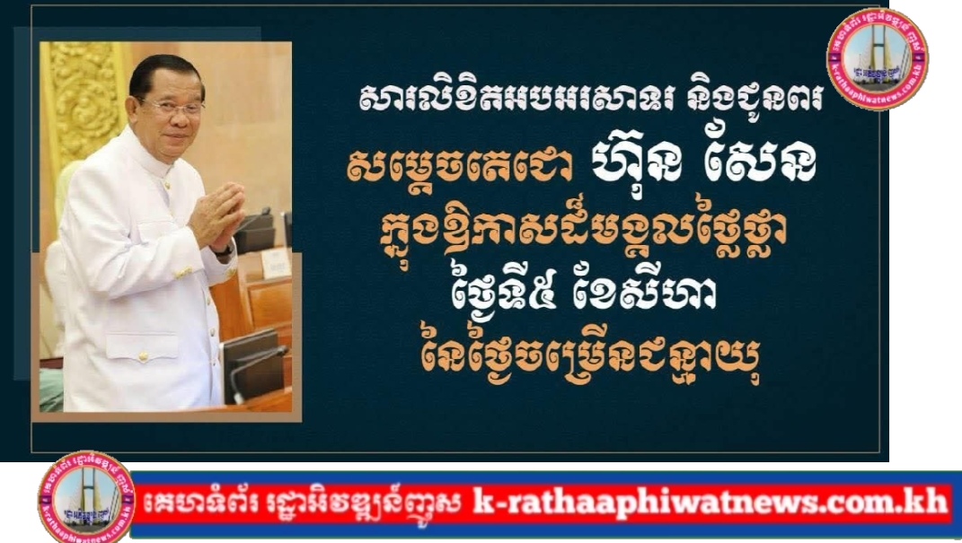 យើងខ្ញុំសូមអនុញ្ញាតចូលរួមសម្តែង នូវសេចក្តីអំណរសាទរឥតឧបមា ជូននូវសព្ទសាធុការពរ បវរសួស្តី សិរីមង្គល វិបុលសុខ មហាប្រសើរគ្រប់ប្រការ ជូនចំពោះសម្តេចតេជោ និងសម្តេចកិត្តិព្រឹទ្ធបណ្ឌិត ប្រកបដោយមនោសញ្ចេតនា គោរពស្រឡាញ់ដ៏ជ្រាលជ្រៅ និងកតញ្ញូកតវេទីតាធម៌យ៉ាងស្មោះស្ម័គ្របំផុត ចំពោះកិច្ចខិតខំប្រឹងប្រែង យកអស់កម្លាំងកាយចិត្ត ប្រាជ្ញាស្មារតី និងបទពិសោធន៍ ប្រកបដោយគតិបណ្ឌិត ក្នុងការដឹកនាំនាវាកម្ពុជាទទួលបាននូវសុខសន្តិភាពពេញលេញ។
