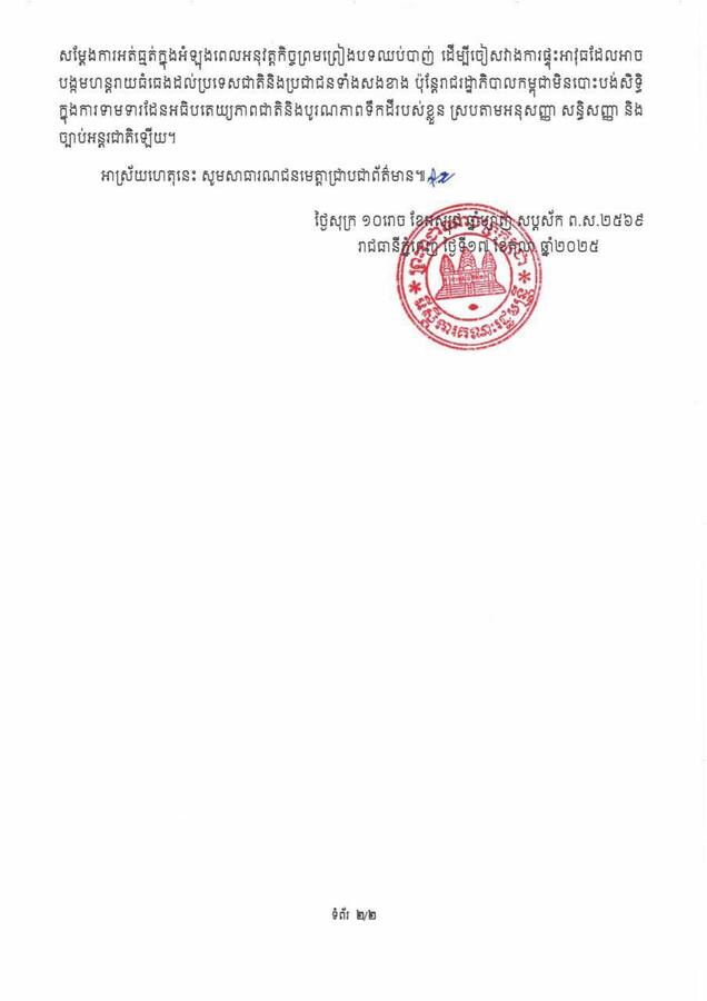 អង្គភាពអ្នកនាំពាក្យរាជរដ្ឋភិបាលកម្ពុជា នាថ្ងៃទី១៧ ខែតុលា ឆ្នាំ២០២៥នេះ បានចេញសេចក្តីថ្លែងការណ៍ឆ្លើយតបទៅនឹងបណ្ដាញសារព័ត៌មានថៃមួយចំនួនបានចេញផ្សាយ ដោយស្រង់សម្តីមន្ត្រីយោធាថៃ ដែលអះអាងថា «កន្លែងដែលទាហានថៃបានជាន់គឺជាទឹកដីរបស់ថៃ»។