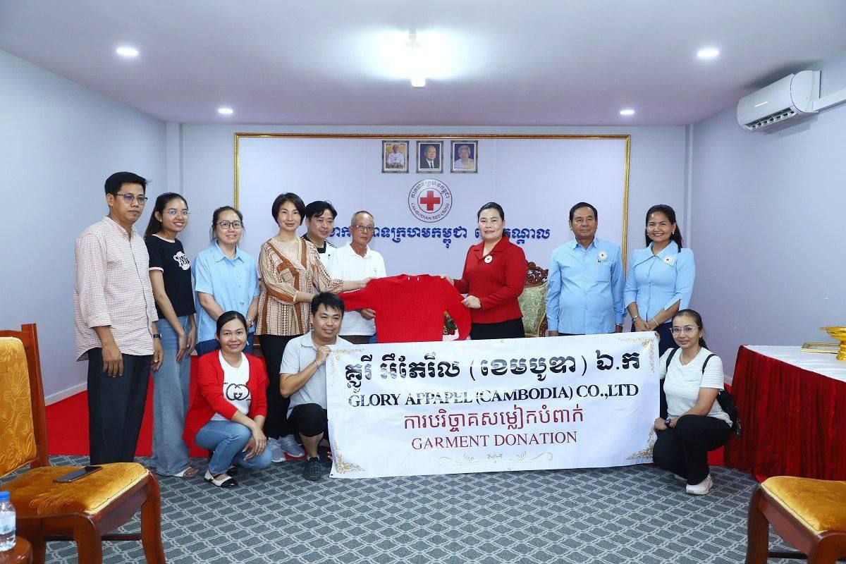 លោកជំទាវ ស្រ៊ុន ស្រីនាង ហិរញ្ញិកគណៈកម្មាធិការសាខា ក្នុងនាមឯកឧត្តម គួច ចំរើន អភិបាល នៃគណៈអភិបាលខេត្តកណ្តាល និងជាប្រធានគណៈកម្មាធិការសាខា សូមថ្លែងអំណរគុណយ៉ាងជ្រាលជ្រៅជាទីបំផុត ចំពោះក្រុមហ៊ុន Glory Apparel (Cambodia) CO.LTD ដែលបានឧបត្ថម្ភ អាវចាក់ ចំនួន ១០០០អាវ ស្មើនឹងទឹកប្រាក់ចំនួន ៨.០០០ ដុល្លារអាមេរិក ដើម្បីបម្រើសកម្មភាពមនុស្សធម៌ជូនដល់ប្រជាពលរដ្ឋ ដែលជួបការលំបាកដោយគ្រោះធម្មជាតិ និងគ្រោះមហន្តរាយផ្សេងៗ។