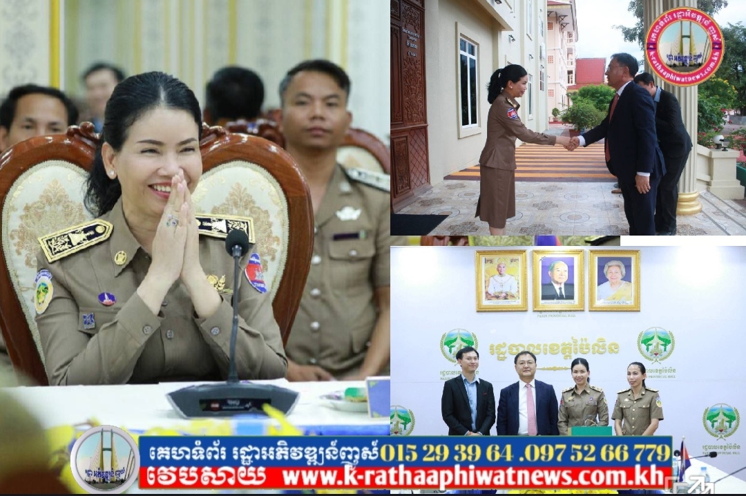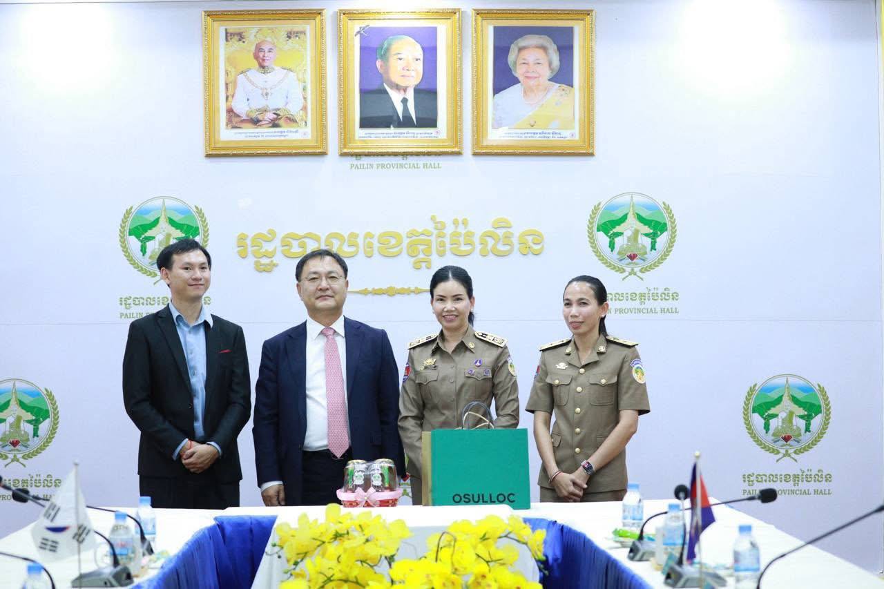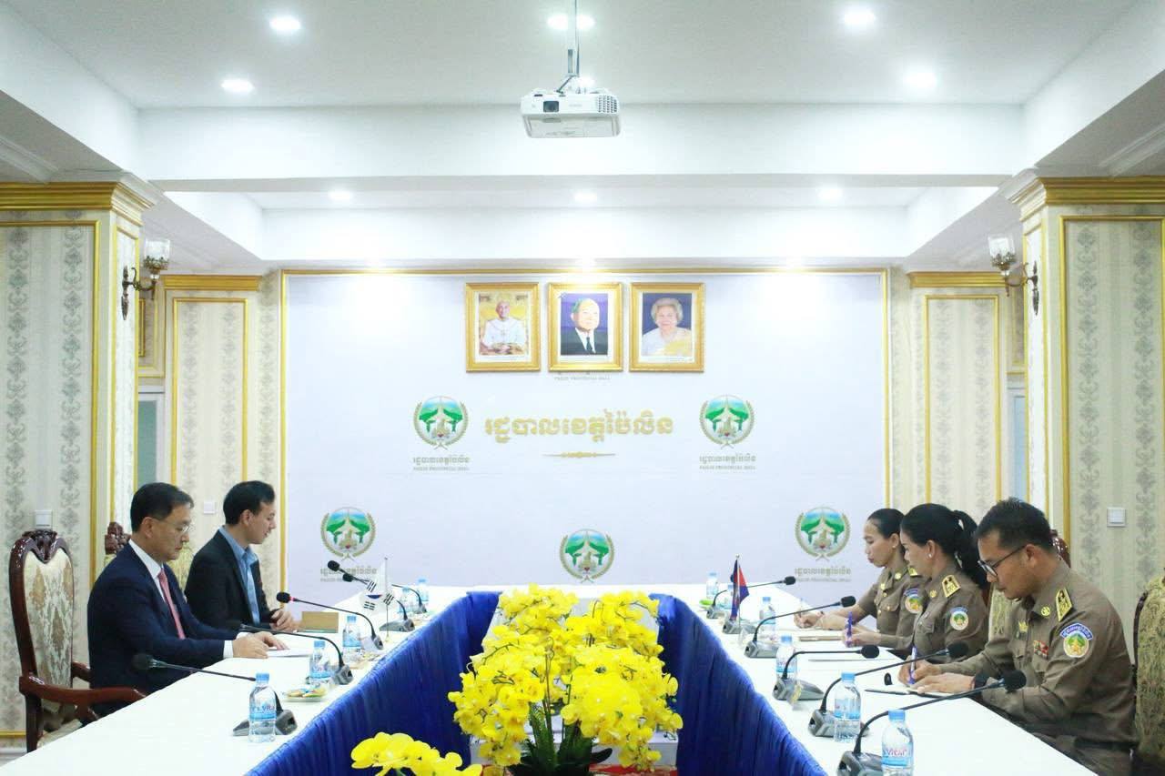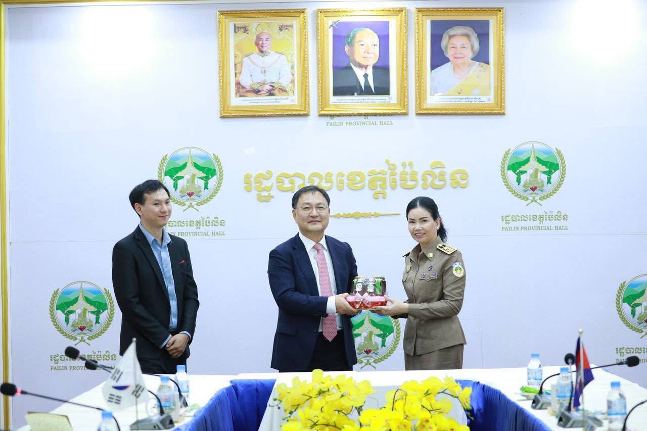 លោកជំទាវបណ្ឌិត បាន ស្រីមុំ បានទទួលស្វាគមន៍យ៉ាងកក់ក្តៅចំពោះវត្តមានឯកឧត្តម KIM SUNGTAI អគ្គកុងស៊ុល នៃស្ថានកុងស៊ុលសាធារណរដ្ឋកូរ៉េ ប្រចាំខេត្តសៀមរាប និងសហការី ដែលបានអញ្ជើញមកកាន់ទឹកដីខេត្តប៉ៃលិនកាលពីរសៀលថ្ងៃទី២៤ ខែតុលា ឆ្នាំ២០២៥ ព្រមទាំងបានជម្រាបជូនអំពីស្ថានភាពភូមិសាស្រ្ត, ស្ថានភាពជីវភាពរស់នៅរបស់ប្រជាពលរដ្ឋ, ស្ថានភាពសេដ្ឋកិច្ច, ស្ថានភាពសន្តិសុខ និងសក្តានុពលរបស់ខេត្ត។