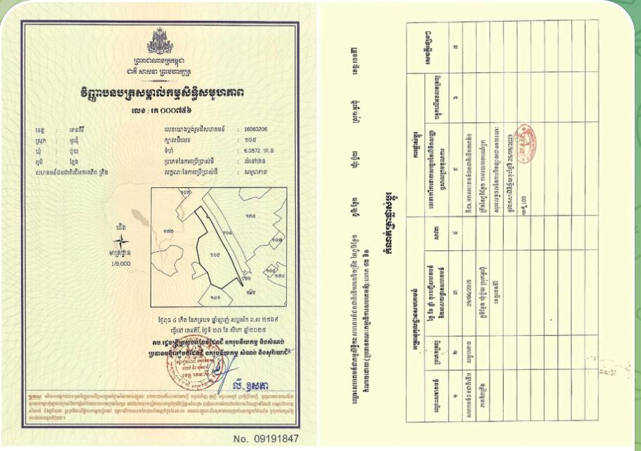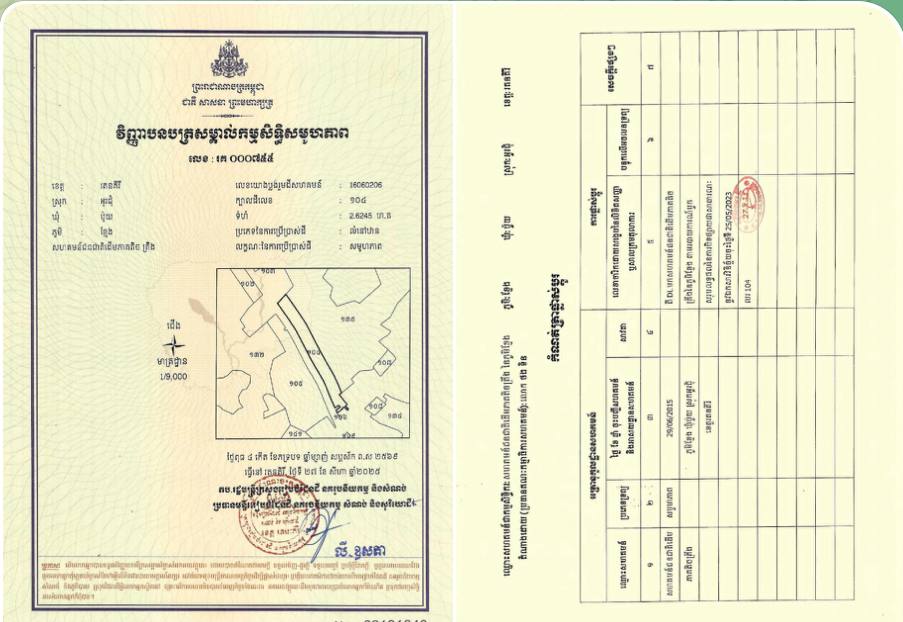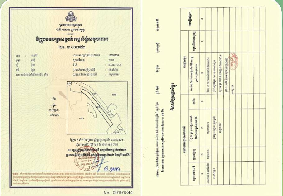 ៥. ក្បាលដីលេខ ១០១ មានទំហំ ៧.៩៨៦៧ ហិកតា ស្ថិតនៅភូមិខ្មែង ឃុំប៉ូយ ស្រុកអូរជុំ ខេត្តរតនគិរី។
