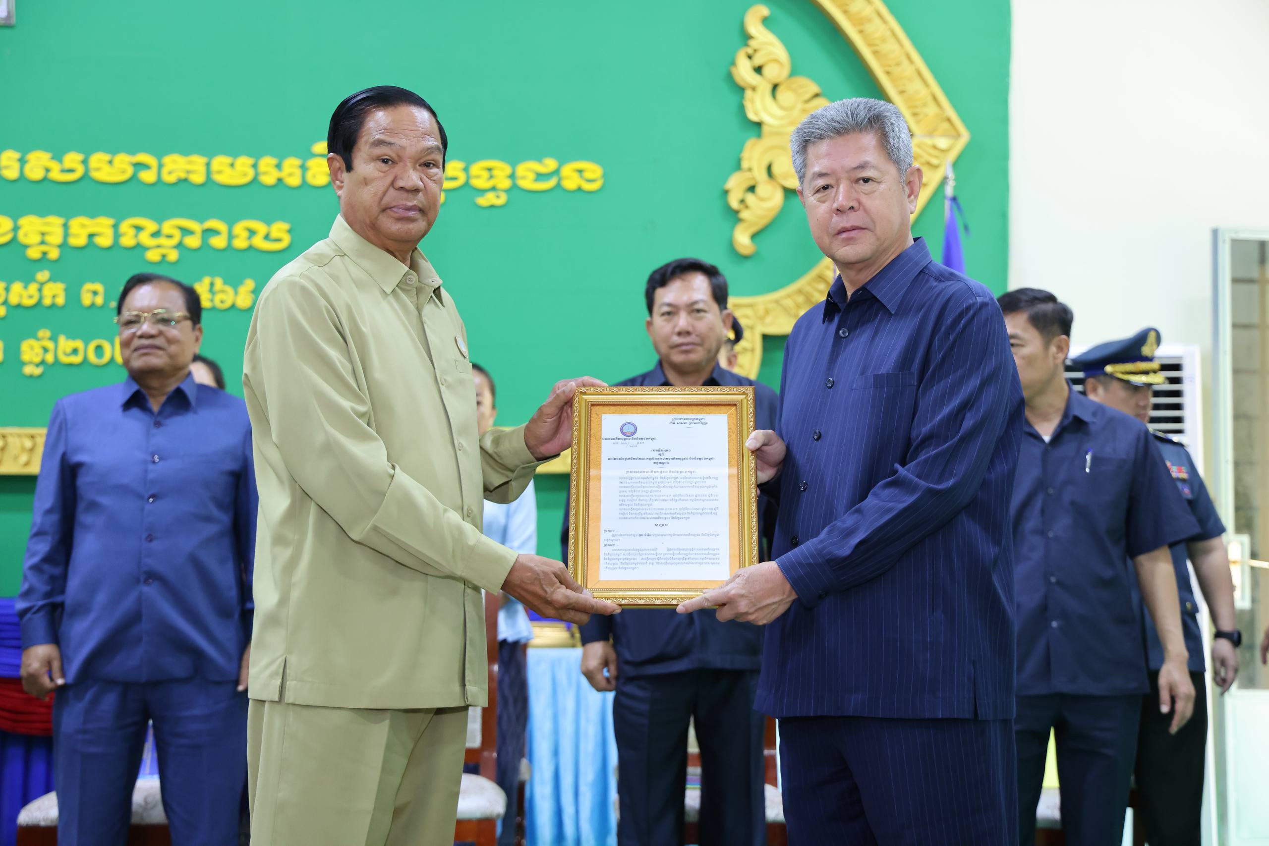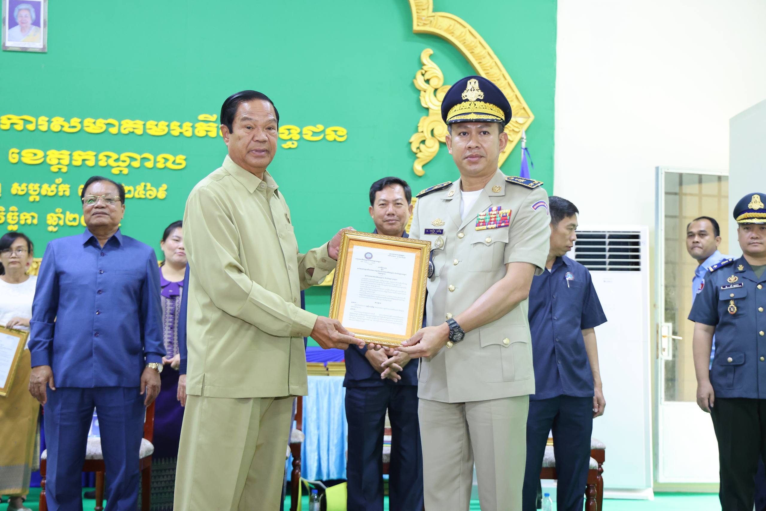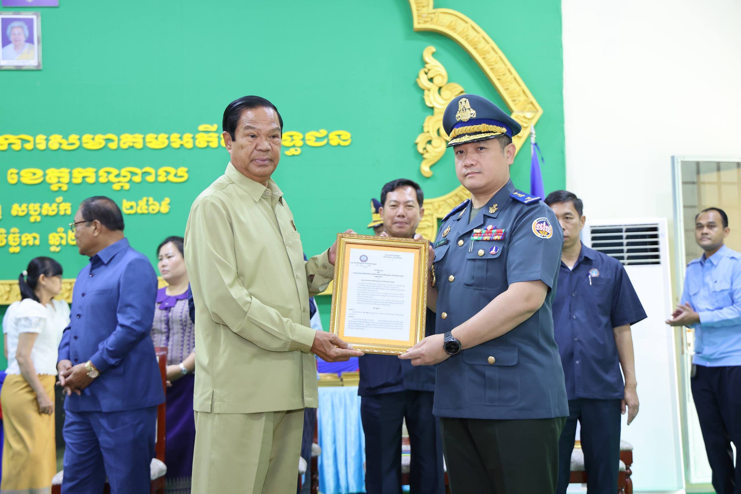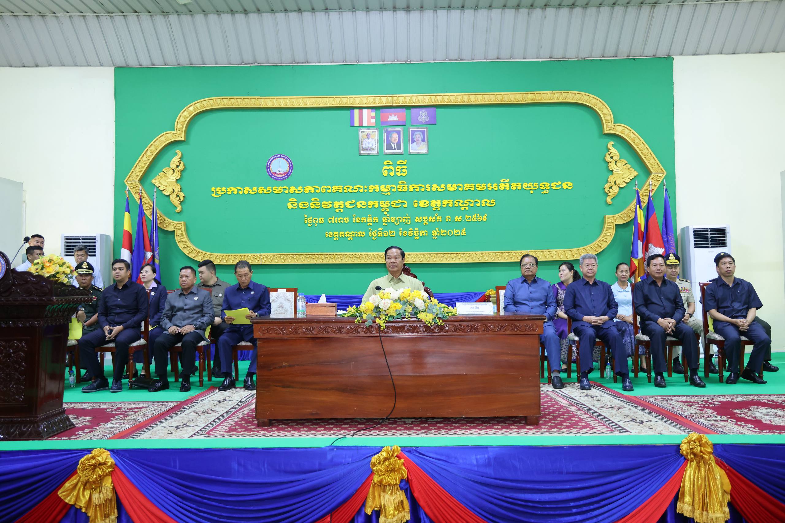ខេត្តកណ្តាល៖ ឯកឧត្ដម នូ សាខន ប្រធានក្រុមប្រឹក្សាខេត្តកណ្ដាល និងឯកឧត្ដម គួច ចំរេីន អភិបាល នៃគណៈអភិបាលខេត្តកណ្ដាល នៅព្រឹកថ្ងៃទី១២ ខែវិច្ឆិកា ឆ្នាំ២០២៥នេះ បានអញ្ជេីញចូលរួម ក្នុងពិធីប្រកាសសមាគមអតីតយុទ្ធជន និងនិវត្តន៍ជន ខេត្តកណ្តាល ក្រោមអធិបតីភាព ឯកឧត្តម នាយឧត្តមសេនីយ៍ កិត្តិសង្គហបណ្ឌិត គន់ គីម ទេសរដ្ឋមន្ត្រី អនុប្រធាន និងជាអគ្គលេខាធិការ គណៈអចិន្ត្រៃយ៍ គណៈកម្មាធិការកណ្តាល នៃសមាគមអតីតយុទ្ធជន និងនិវត្តជនកម្ពុជា។ តាមសេចក្តីសម្រេចរបស់សមាគមអតីតយុទ្ធជនកម្ពុជា ឯកឧត្ដម គួច ចំរេីន អភិបាល នៃគណៈអភិបាលខេត្តកណ្ដាល ត្រូវបានគណៈអចិន្ត្រៃយ៍ គណៈកម្មាធិការកណ្តាល ផ្តល់នូវសេចក្តីទុកចិត្ត និងជឿជាក់ប្រគល់ភារកិច្ច ជាប្រធានគណៈកម្មាធិការសមាគមអតីតយុទ្ធជន និងនិវត្តជនកម្ពុជា ខេត្តកណ្តាល។