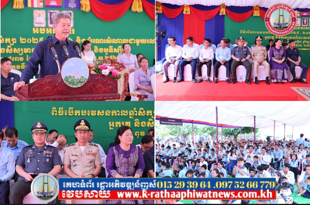 ខេត្តកណ្តាល៖ ថ្លែងនៅក្នុងពិធីបើកបវេសនកាល ឆ្នាំសិក្សា២០២៥-២០២៦ និងសំណេះសំណាលជាមួយលោកគ្រូ អ្នកគ្រូ នៃវិទ្យាល័យអប់រំពិសេស ក្រុងតាខ្មៅ នៅព្រឹកថ្ងៃទី១១ ខែវិច្ឆិកា ឆ្នាំ២០២៥នេះ ឯកឧត្តម គួច ចំរើន អភិបាល នៃគណៈអភិបាលខេត្តកណ្ដាល មានប្រសាសន៍ថា ពិធីបើកបវេសនកាល នាថ្ងៃនេះ គឺជាការបើកទំព័រថ្មីមួយនៃការសិក្សា និងជាជំហានបន្តទៅមុខមួយជំហានទៀត សម្រាប់ក្មួយៗសិស្សានុសិស្សគ្រប់រូប ឆ្ពោះទៅរកចំណេះដឹង បំណិនជីវិត ជំនាញថ្មីៗ ព្រមទាំងជាឱកាសក្នុងការបង្កើតមិត្តភក្តិថ្មី ប្រកបដោយការគាំទ្រយ៉ាងកក់ក្តៅ ពីសំណាក់មាតាបិតា អាណាព្យាបាល និងលោកគ្រូ អ្នកគ្រូ។