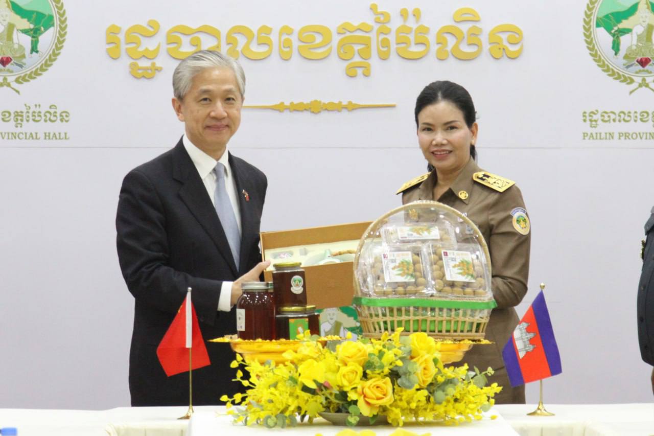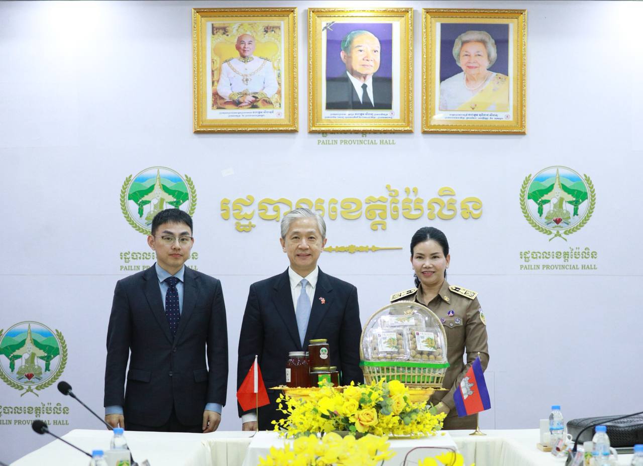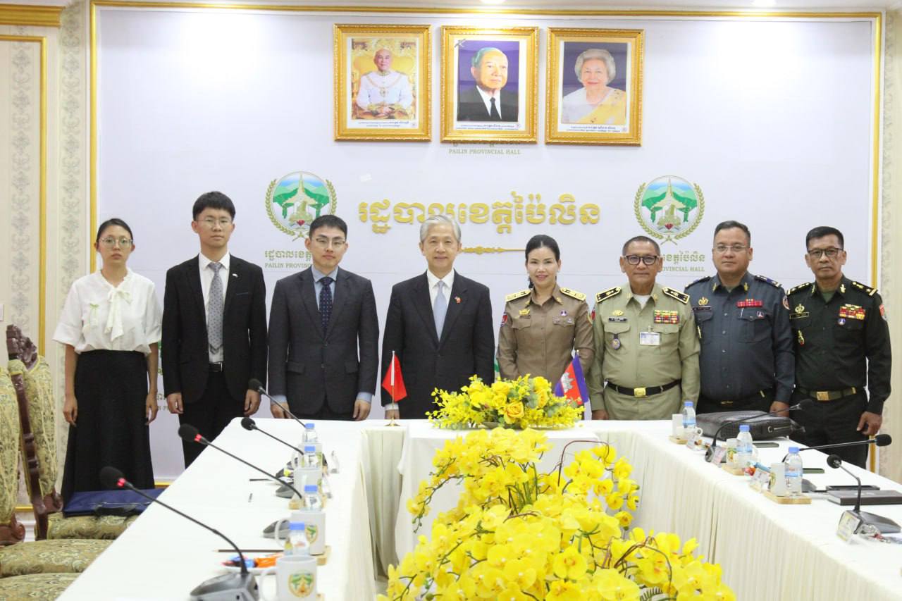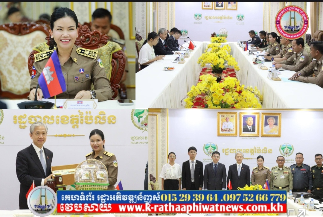 លោកជំទាវបណ្ឌិត បាន ស្រីមុំ អភិបាលនៃគណៈអភិបាលខេត្តប៉ៃលិន បានទទួលស្វាគមន៍យ៉ាងកក់ក្តៅ ចំពោះ វត្តមាន ឯកឧត្តម វ៉ាង វិនប៊ីន (WANG Wenbin) ឯកអគ្គរដ្ឋទូតវិសាមញ្ញ និងពេញសមត្ថភាព នៃសាធារណរដ្ឋ ប្រជាមានិត ចិនប្រចាំព្រះរាជាណាចក្រកម្ពុជា និងសហការីដែលបានអញ្ជើញមកកាន់ទឹកដីខេត្តប៉ៃលិន កាលពីរសៀល ថ្ងៃទី០៦ ខែមីនា ឆ្នាំ២០២៦ ព្រមទាំងបានជម្រាបជូនអំពីស្ថានភាពភូមិសាស្រ្តស្ថានភាពជីវភាពរស់នៅរបស់ប្រជាពលរដ្ឋ, ស្ថានភាពសេដ្ឋកិច្ច, ស្ថានភាពសន្តិសុខ និងសក្តានុពលរបស់ខេត្ត។
