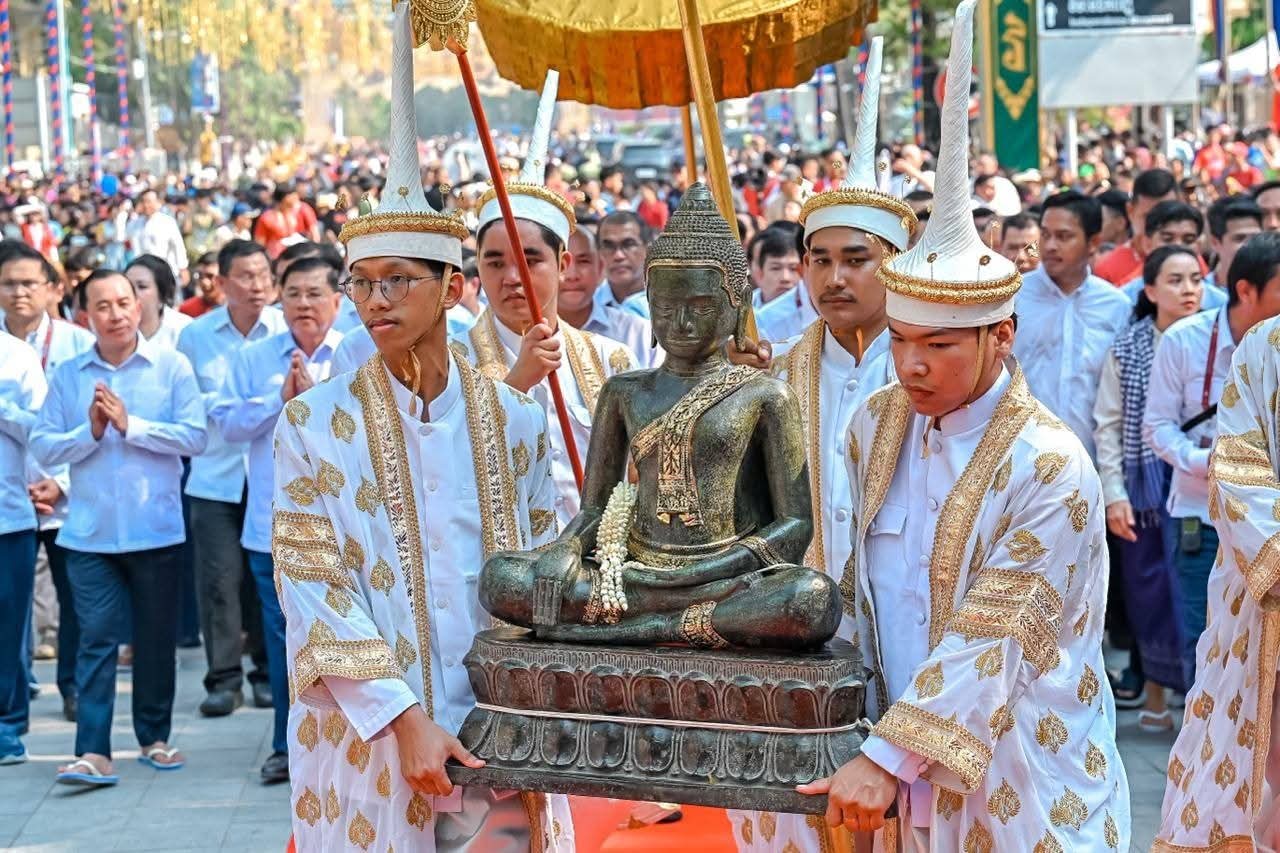 ភ្នំពេញ ៖ ឯកឧត្តម ហ៊ុន ម៉ានី ឧបនាយករដ្ឋមន្ត្រី រដ្ឋមន្ត្រីក្រសួងមុខងារសាធារណៈ និងជាប្រធានសហភាពសហព័ន្ធយុវជនកម្ពុជា (ស.ស.យ.ក.) និងឯកឧត្តម ឃួង ស្រេង អភិបាលរាជធានីភ្នំពេញ នាថ្ងៃទី១៦ ខែមេសា ឆ្នាំ២០២៦ ត្រូវនឹងថ្ងៃទី៣ ជាថ្ងៃវារៈឡើងស័ក្ដពិធីបុណ្យចូលឆ្នាំថ្មីប្រពៃណីជាតិខ្មែរ ក្នុងព្រឹត្តិការណ៍នគរសង្រា្កន្ត ឆ្នាំ២០២៦ បានអញ្ជើញជាអធិបតី ក្នុងពិធីដង្ហែព្រះពុទ្ធប្បដិមា ពីវត្តឧណ្ណាលោមមកគង់លើបុសប្បុកនិងស្រង់ព្រះនៅរមណីដ្ឋានវប្បធម៌ប្រវត្តិសាស្ត្រវត្តភ្នំ ។