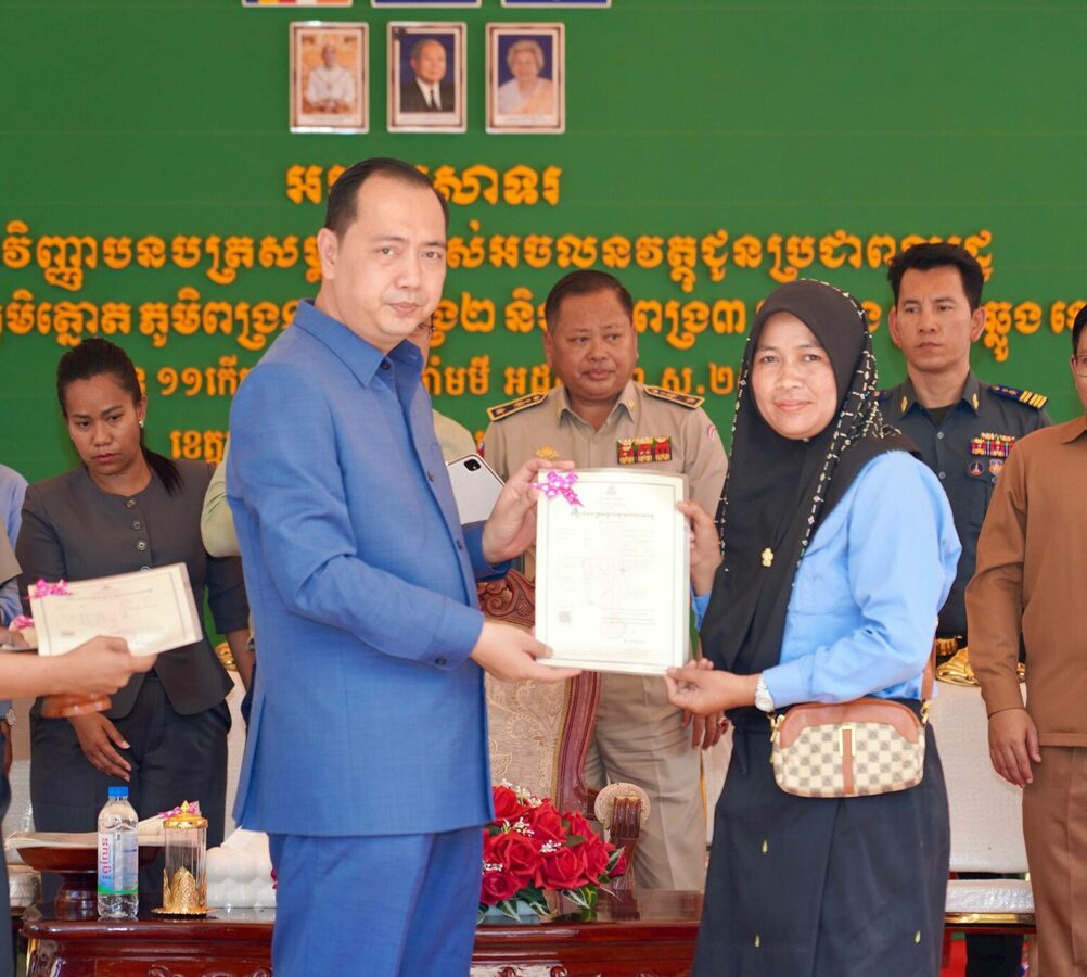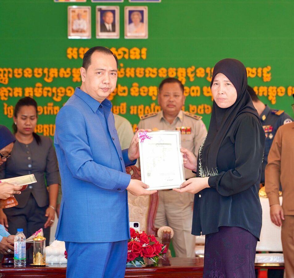 ឯកឧត្តមប្រធានក្រុមការងារ ក៏បានណែនាំឱ្យបងប្អូនប្រជាពលរដ្ឋដែលវិញ្ញាបនបត្រសម្គាល់ម្ចាស់អចលនវត្ថុ នាឱកាសនេះ ត្រូវថែរក្សាឱ្យបានល្អ ប្រើប្រាស់ឱ្យមានប្រសិទ្ធភាព និងគោរពតាមច្បាប់ ដើម្បីធានាថាកម្មសិទ្ធិដីធ្លីមានសុវត្ថិភាព និងចីរភាព៕ ប្រភព៖ ទូរទស្សន៍ជាតិកម្ពុជា