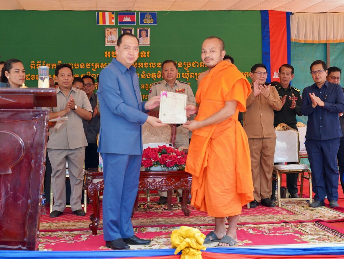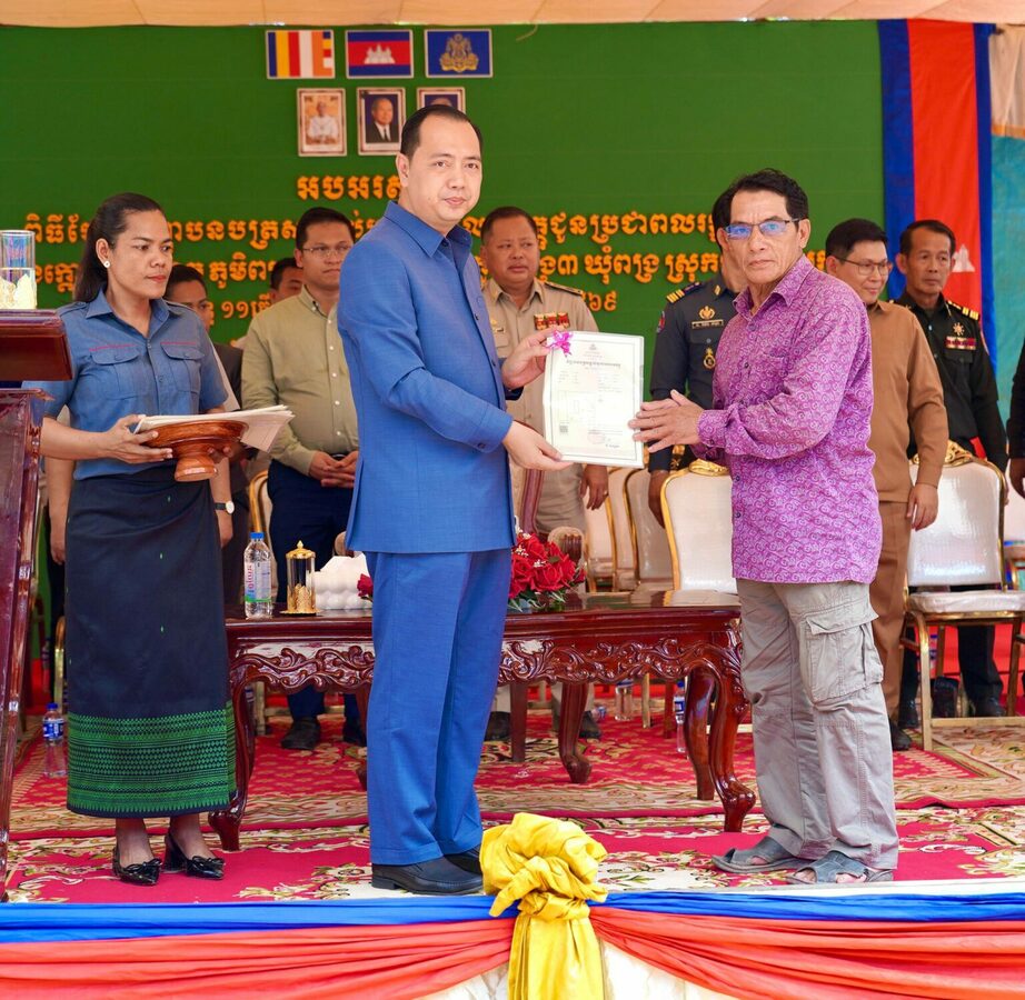ក្រចេះ៖ ឯកឧត្តម នេត្រ ភក្ត្រា រដ្ឋមន្ត្រីក្រសួងព័ត៌មាន និងជាប្រធានក្រុមការងាររាជរដ្ឋាភិបាលចុះមូលដ្ឋានខេត្តក្រចេះ អញ្ជើញជាអធិបតីពិធីចែកវិញ្ញាបនបត្រសម្គាល់ម្ចាស់អចលនវត្ថុ ( បណ្ណកម្មសិទ្ធិ ) ជូនប្រជាពលរដ្ឋដែលមានក្បាលដី ចំនួន ៣,៨២០ ក្បាលដី ស្មើនឹង ២,៣៤០ គ្រួសារ ស្ថិតនៅឃុំពង្រ ស្រុកឆ្លូង ខេត្តក្រចេះ ។