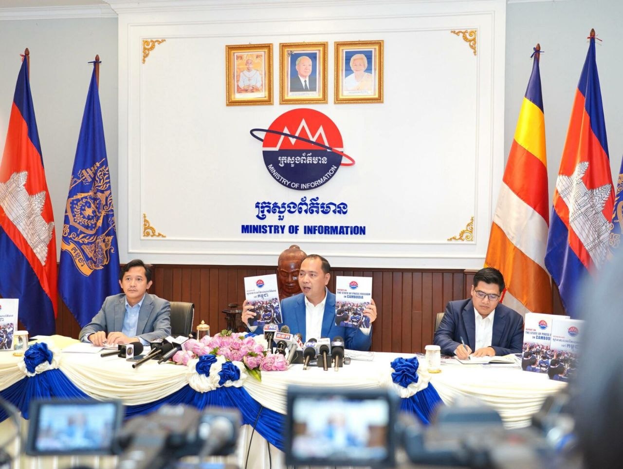 ភ្នំពេញ៖សន្និសីទកាសែត ផ្សព្វផ្សាយរបាយការណ៍ស្ដីពី «ស្ថានភាពសេរីភាពសារព័ត៌មាននៅកម្ពុជាឆ្នាំ២០២៦»នៅថ្ងៃទី២៩ ខែមេសា ឆ្នាំ២០២៦ នៅសាលសវនាការវាំងឈើ នៃទីស្ដីការក្រសួងព័ត៌មាន ដែលបានប្រព្រឹត្តទៅក្រោមអធិបតីភាពឯកឧត្តម នេត ភក្រ្តា រដ្ឋមន្ត្រីក្រសួងព័ត៌មាន។