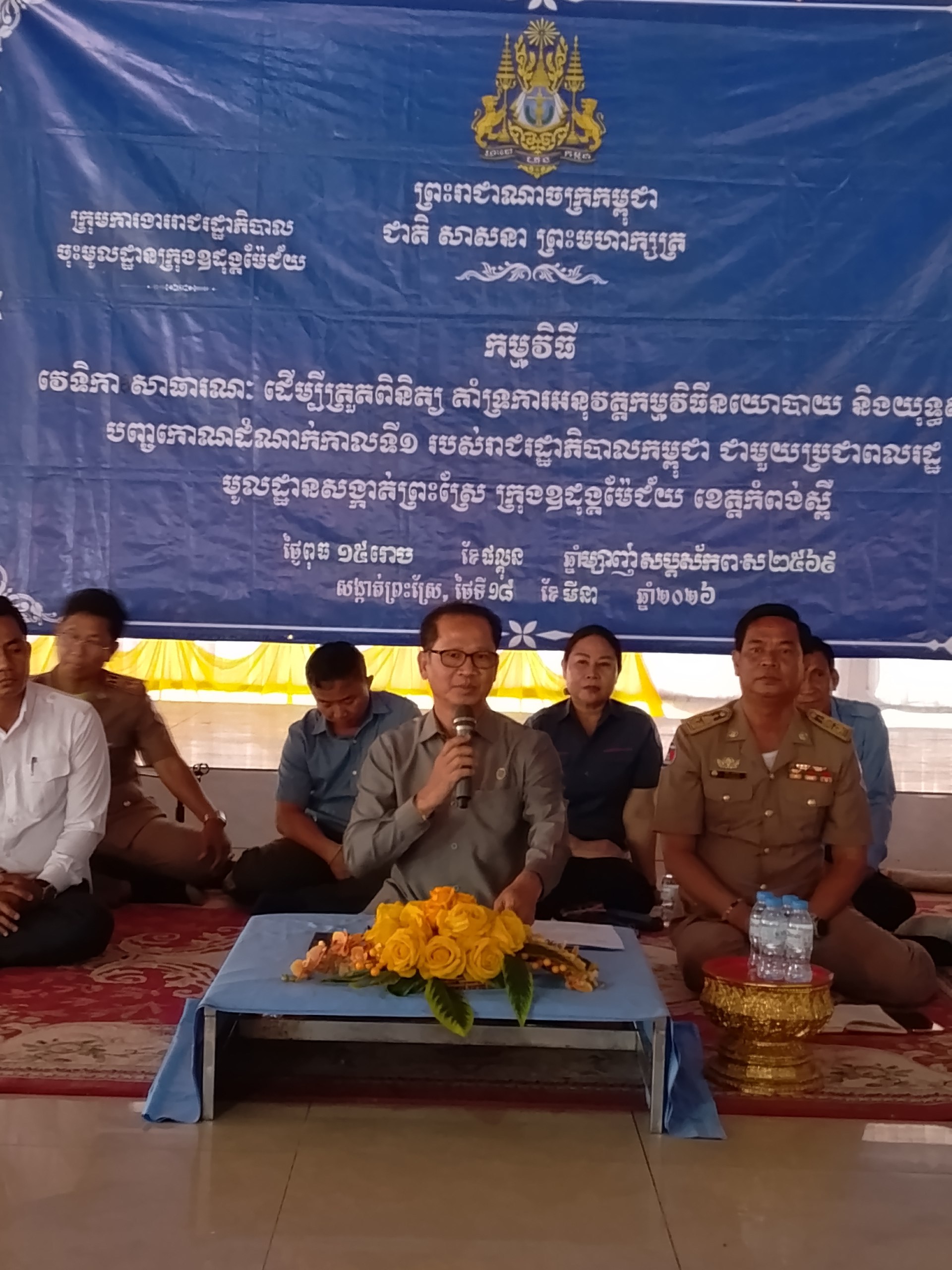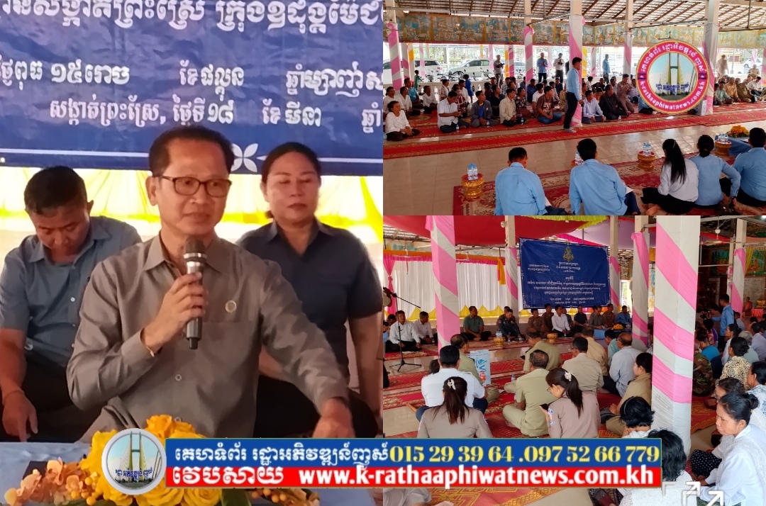 កំពង់ស្ពឺ៖ ឯកឧត្ដម ង៉ូវ បូរីណា រដ្ឋលេខាធិការ ក្រសួងបរិស្ថាន និងជាប្រធានក្រុមការងាររាជរដ្ឋាភិបាលចុះជួយសង្កាត់ព្រះស្រែ បានអញ្ជើញជាអធិបតី ក្នុងកម្មវីធីវេទិកាសាធារណៈ ដេីម្បីត្រួតពិនិត្យ គាំទ្រការអនុវត្តកម្មវិធីនយោបាយ និងយុទ្ធសាស្ត្របញ្ជកោណដំណាក់កាលទី១ របស់រាជរដ្ឋាភិបាលកម្ពុជា ជាមួយប្រជាពលរដ្ឋក្នុងមូលដ្ឋានសង្កាត់ព្រះស្រែ ក្រុងឧដុង្គម៉ែជ័យ ខេត្តកំពង់ស្ពឺ នាព្រឹកថ្ងៃទី១៨ ខែមីនា ឆ្នាំ២០២៦ ដែលមានការអញ្ជើញចូលរួមពី អភិបាលរងក្រុង មន្រ្ដីជំនាញមន្ទីរពាក់ព័ន្ធជុំវិញក្រុង និងប្រជាពលរដ្ឋសរុបជាង ៣៥៨នាក់។