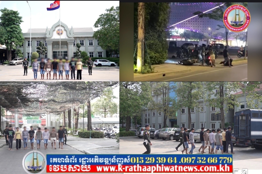 បានធ្វើសកម្មភាពវាយកាប់គ្នាទៅវិញទៅមកបណ្តាលអោយរងរបួសទាំងសងខាង នៅចំណុចមុខផ្សារទំនើបជីបម៉ុង២៧១ ភូមិព្រែកតាគង់១ សង្កាត់ចាក់អង្រែលើ ខណ្ឌមានជ័យ រាជធានីភ្នំពេញ។ ភ្លាមៗបន្ទាប់ពីទទួលបានព័ត៌មាន កម្លាំងអាវុធហត្ថរាជធានីភ្នំពេញ ក្នុងមូលដ្ឋានខណ្ឌមានជ័យ ចុះដល់កន្លែងកើតហេតុធ្វើការស្រាវជ្រាវជាបន្តបន្ទាប់ ឈានដល់ការឃាត់ខ្លួនក្មេងទំនើងទាំង០២ភាគីបានសរុបចំនួន ០៨នាក់ បញ្ជូនទៅការិយាល័យជំនាញ នៃ កងរាជអាវុធហត្ថរាជធានីភ្នំពេញ ដើម្បីចាត់ការបន្តតាមនីតិវិធី។ វត្ថុតាងចាប់យក ៖ ម៉ូតូ០១គ្រឿងម៉ាកហុងដា ស្កូពី ពណ៌ខ្មៅ ស៊េរីឆ្នាំ២០២៣ ពាក់ស្លាកលេខ ភ្នំពេញ 1KH-4857, បំពង់ទីបដែក ០១ដើម និងកាំបិតប៉័ងតោ ០១ដើម រួមនឹងសម្ភារៈមួយចំនួនទៀត។
